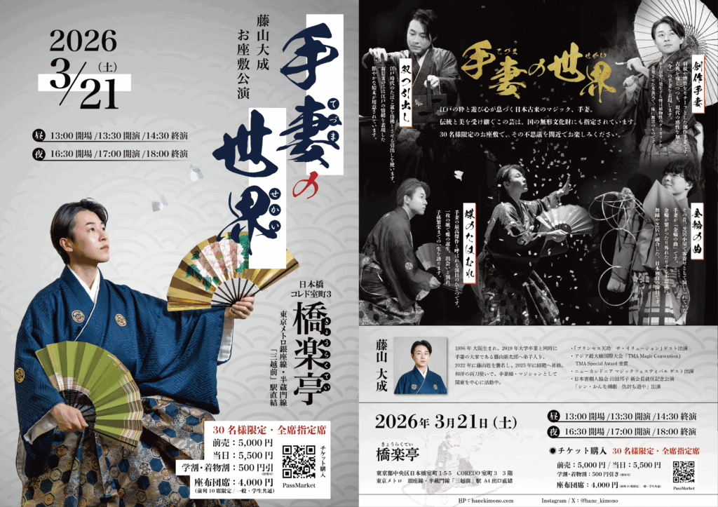 伝統芸能の手妻と西洋のマジックを融合し、新たな形のマジックショーを目指した公演です!