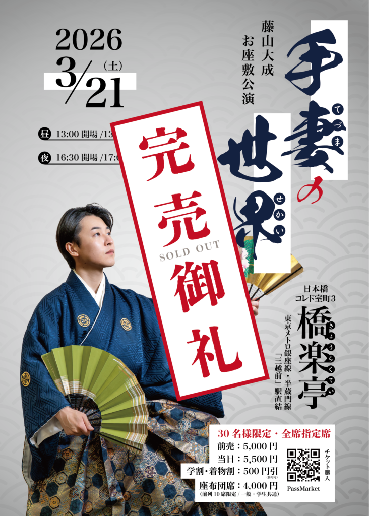 座布団席:4,000円(前列10席限定/一般・学生共通)
