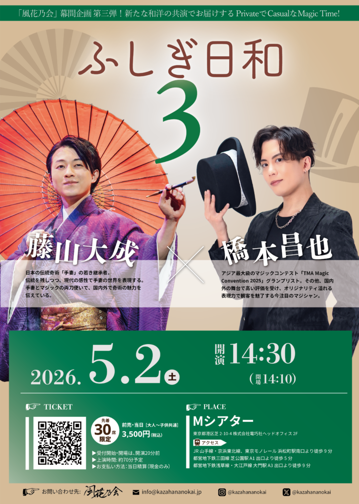 伝統芸能の手妻と西洋のマジックを融合し、新たな形のマジックショーを目指した公演です!